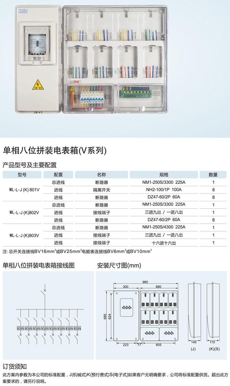 采購:單相八位拼裝電表箱(V系列)