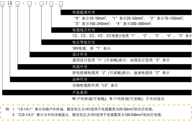 1KV冷縮電纜附件產(chǎn)品名稱及規(guī)格型號